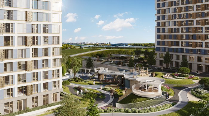 Территория полностью безопасна для детей и приятна для отдыха взрослых. Озеленение и зоны отдыха создают атмосферу уюта прямо во дворе
