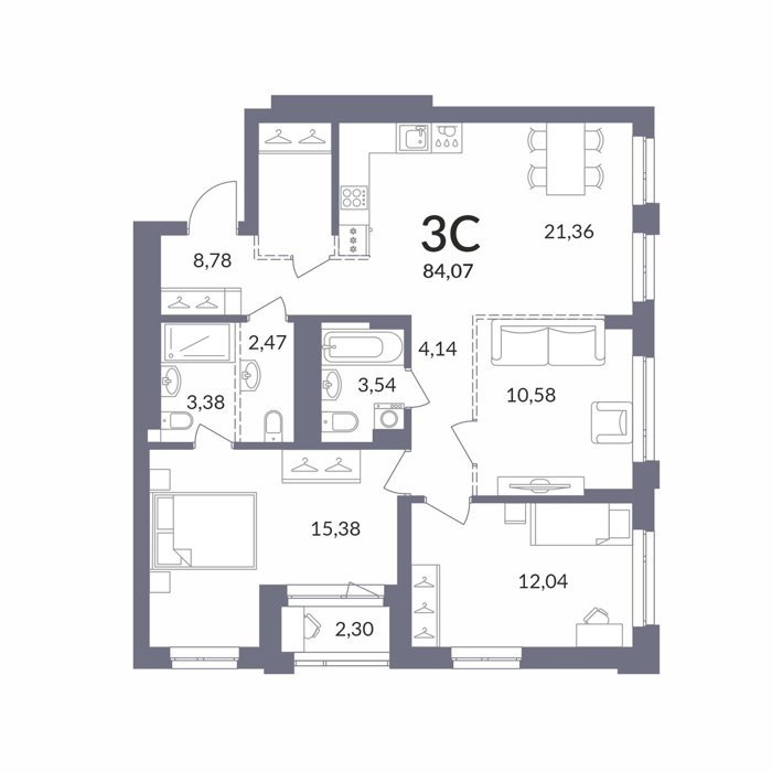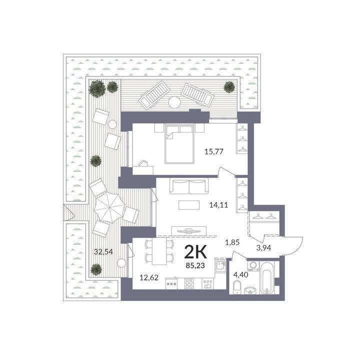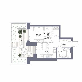 От просторных однокомнатных до семейных квартир, все варианты с большими окнами и возможностью гибкой организации пространства. А еще планировки с террасами