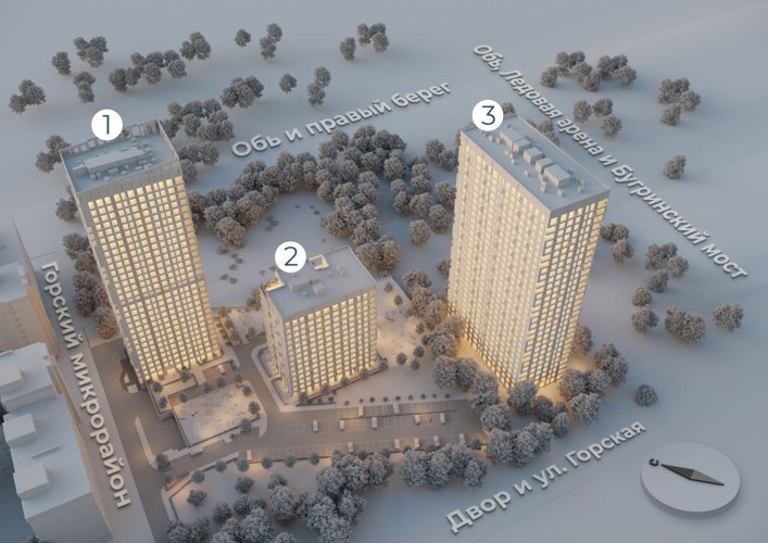 Горская Лагуна - это новый жилой квартал на левом берегу, который открывает лучший вид на правый. Панорама центра города, огни набережной и мосты выглядят отсюда особенно впечатляюще. В скором времени рядом откроется новая станция метро, а Сибирь Арена в паре минут ходьбы подарит доступ к спортивным турнирам, концертам мировых артистов и городским событиям