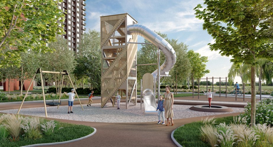 25-этажная башня и остальные дома как продолжения образуют гармоничную композицию на береговой линии