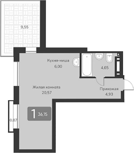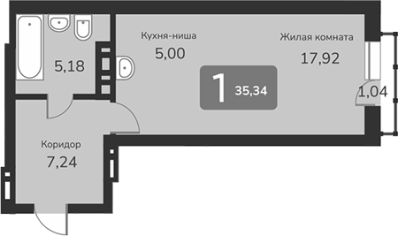 Площадь от 35.3 м2