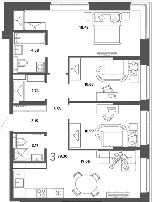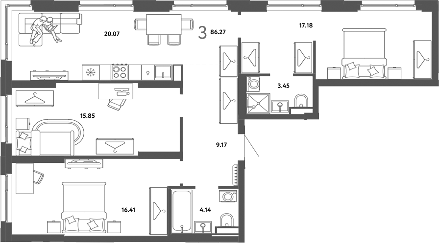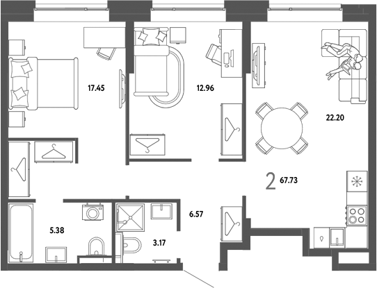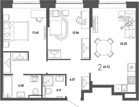 От студий до трёхкомнатных квартир, каждый найдёт вариант под свой стиль жизни. Высота потолков от 2,6 метров и увеличенные окна делают пространство светлым и комфортным