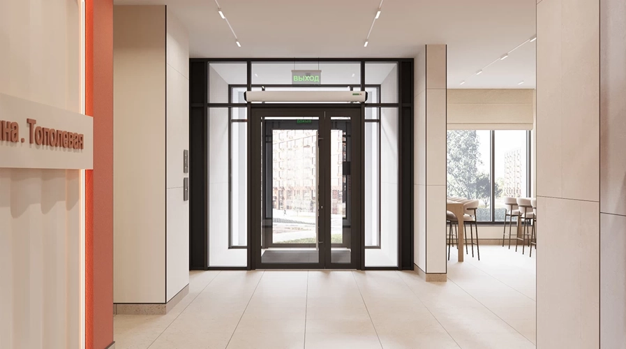 Страна.Тополевая - это новый жилой квартал в Октябрьском районе, где архитектура и комфорт образуют единую гармонию. Два корпуса переменной этажности формируют стильный ансамбль: уютный малоэтажный дом со спокойным двором и эффектная башня-доминанта с ярким силуэтом. Панорамные окна, мягкие оттенки фасадов и парадные с мягкой мебелью и живыми растениями создают ощущение современного и тёплого дома, куда приятно возвращаться каждый день