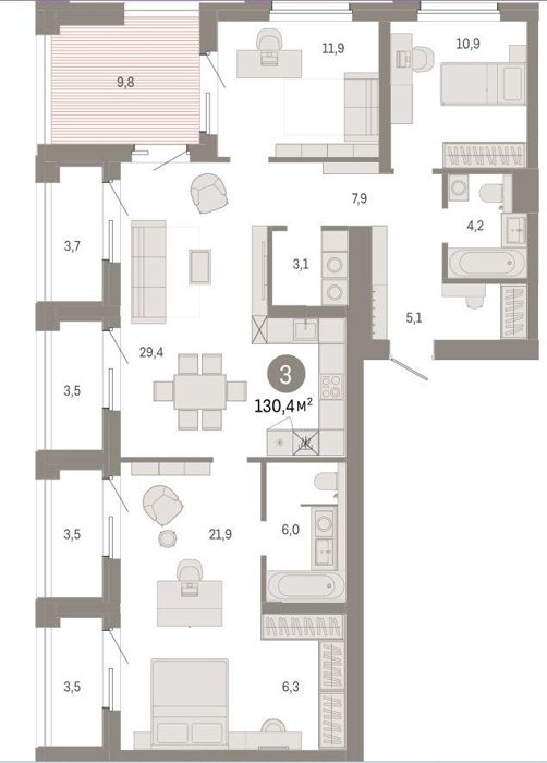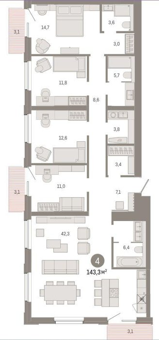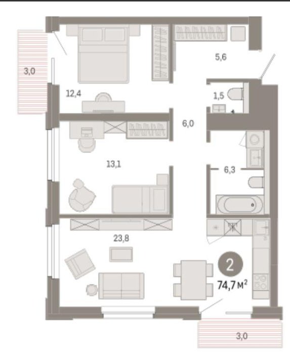 В проекте представлены квартиры от студий до четырёхкомнатных, включая редкие форматы с террасами и ориентацией на две стороны света. Потолки до 2,95 м создают ощущение пространства, а панорамные окна наполняют квартиры светом и делают любую планировку визуально шире и воздушнее