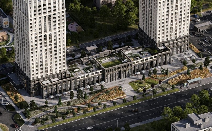 На уровне города формируется галерея с ресторанами, кофейнями, супермаркетом, салоном красоты и фитнесом. Это добавляет городской динамики, а жителям позволяет жить по принципу "всё рядом"