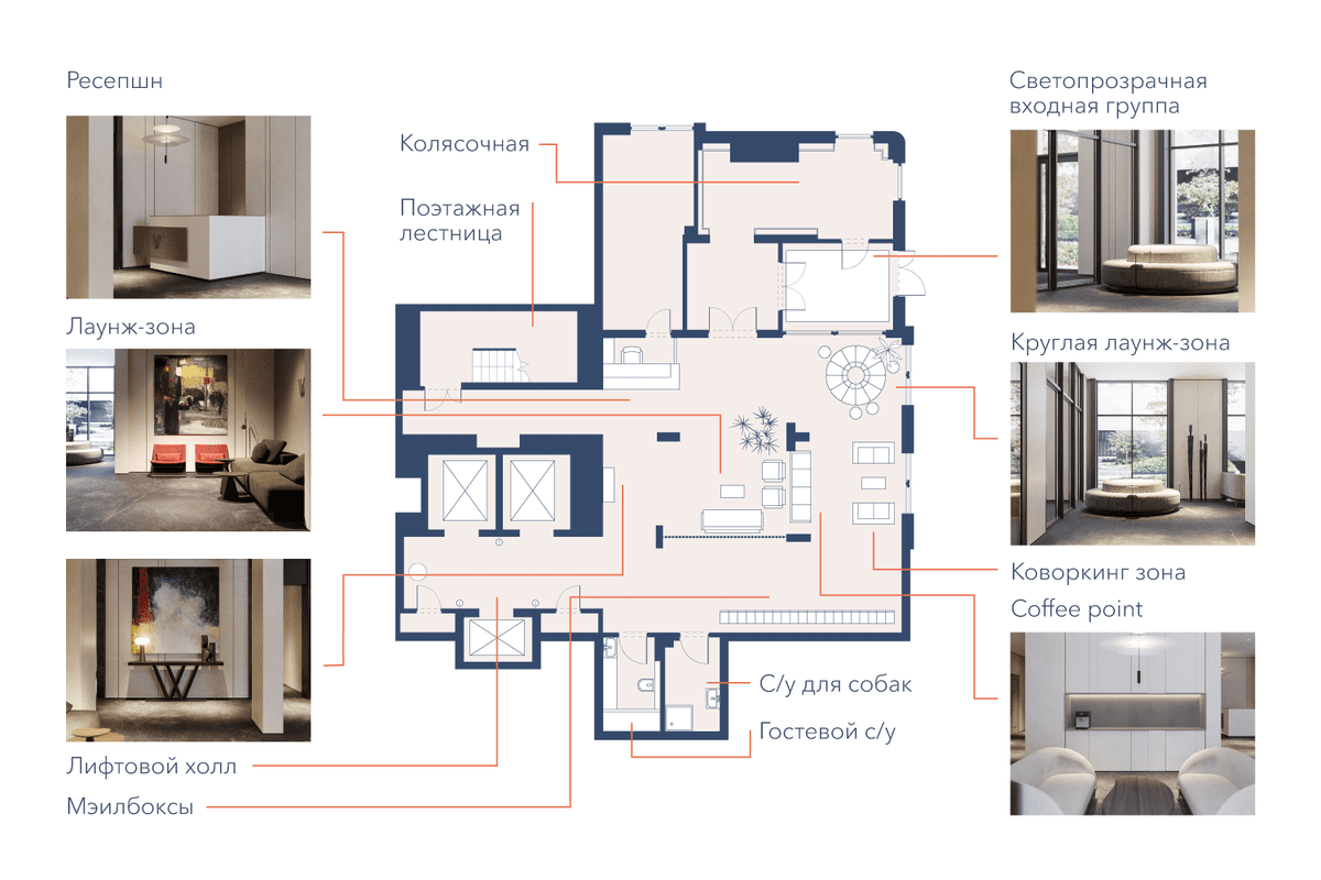 Колясочные, санузлы для собак, коворкинг, ресепшн, почтовые боксы, видеонаблюдение - комплекс проектировали с учетом реальных сценариев жизни, а не только красивых фасадов