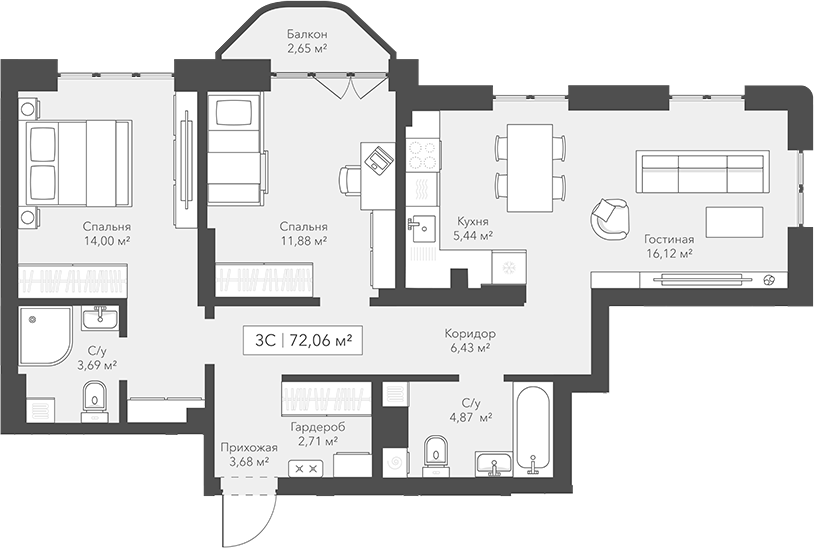 В проекте множество форматов: от компактных квартир до пентхаусов с четырьмя спальнями, теплыми лоджиями, гардеробными, объединяемыми планировками и потолками до 3 метров. В квартирах продуман свет, эргономика и возможность дозаказать ремонт у застройщика